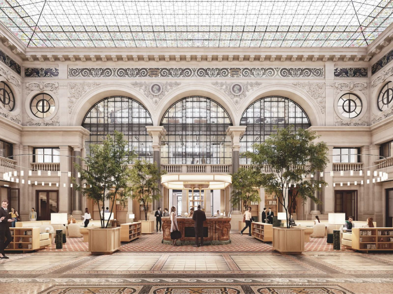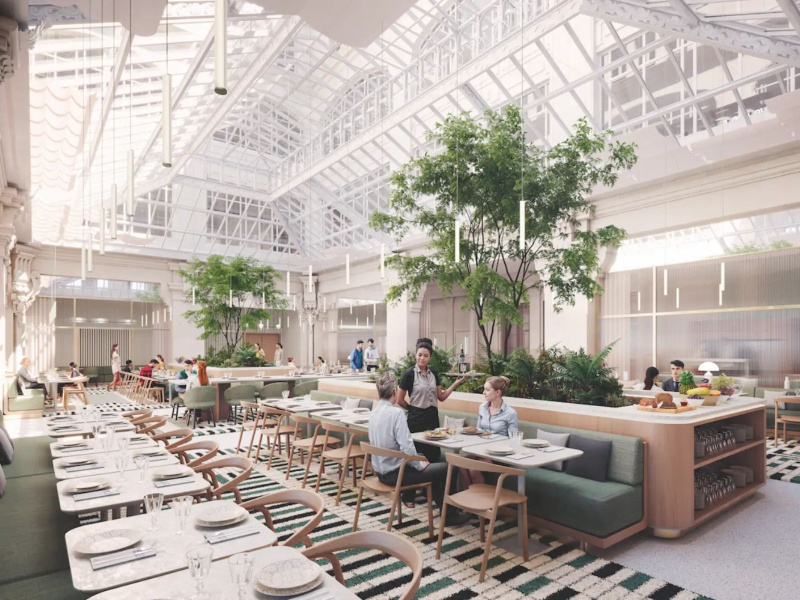 Au cœur du projet, une grande brasserie ouverte au public comptera 200 places assises, un bar à cocktails et prendra place sous 6 mètres en dessous de la verrière emblématique, faisant de ce lieu un futur hotspot du 9ᵉ. Il s’intégrera à un ensemble plus vaste mêlant bar, hôtel, coworking, salle de sport et jardins. Le chantier, lancé en 2023, s’achèvera début 2026, avec des visites déjà accessibles.