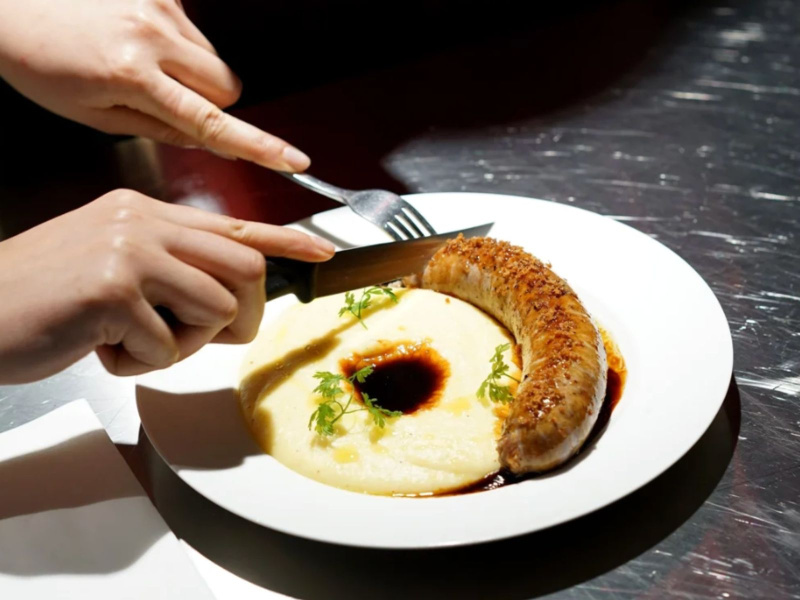 Le midi, on s’y attable pour une cuisine généreuse, 100 % maison et très carnivore : terrines, saucisse-purée, abats ou pièces du moment, le tout préparé avec savoir-faire.