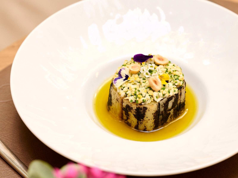 Situé sur la mythique avenue des Champs-Élysées, le restaurant Jenny, installé dans l’hôtel Paris Marriott, nous a offert une parenthèse hors du temps, entre élégance parisienne et hommage à la haute couture. Dès l’entrée, nous avons été frappés par le raffinement du lieu : un vaste patio baigné de lumière naturelle, aux assises confortables, aux teintes douces et à la décoration minimaliste mais chaleureuse. L’ambiance évoquait un salon d’artiste ou un atelier de créatrice, en clin d’œil à Jenny Sacerdote, pionnière de la mode du début du XXe siècle. Le style était féminin, sobre, et parfaitement en accord avec l’histoire qu’incarne le lieu. À table, nous avons démarré avec une sélection de tapas délicats : des mini rolls de homard, moelleux et iodés, parfaitement équilibrés ; une bouchée de foie gras onctueuse et subtilement assaisonnée ; et des œufs de caille, tout en finesse, joliment dressés. Chaque assiette semblait conçue comme une création sur-mesure, mêlant esthétisme et justesse des saveurs. En plat principal, nous avons opté pour deux incontournables de la carte : le pavé de saumon snacké, à la cuisson maîtrisée, accompagné d’un tian de légumes fondants et d’une crème de feta légère, et le filet de bœuf, tendre à cœur, servi avec des artichauts poêlés, des girolles et un jus perlé intense. Le mariage des textures et des goûts frôlait la perfection. Le chef Vincent est venu nous présenter lui-même les plats, avec une grande générosité. Sa passion transparaissait dans ses mots autant que dans ses assiettes. Côté sucré, c’est Valentin, le chef pâtissier, qui a pris le relais. Avant même de servir les desserts, il nous a proposé une petite bouchée sucrée en guise de transition, une attention charmante et pleine de finesse. Nous avons terminé le repas sur deux douceurs classiques mais exécutées à la perfection : la crème brûlée à la vanille de Madagascar, crémeuse et intensément parfumée, avec une fine croûte caramélisée craquante, et la pomme au four, revisitée tout en délicatesse, légèrement tiède, fondante, et subtilement épicée. Ce déjeuner chez Jenny a été une expérience à part entière : raffinée, généreuse et profondément inspirée. L’élégance du lieu, la précision des assiettes et la bienveillance de l’équipe ont transformé ce moment en une véritable célébration de l’art de vivre à la française.