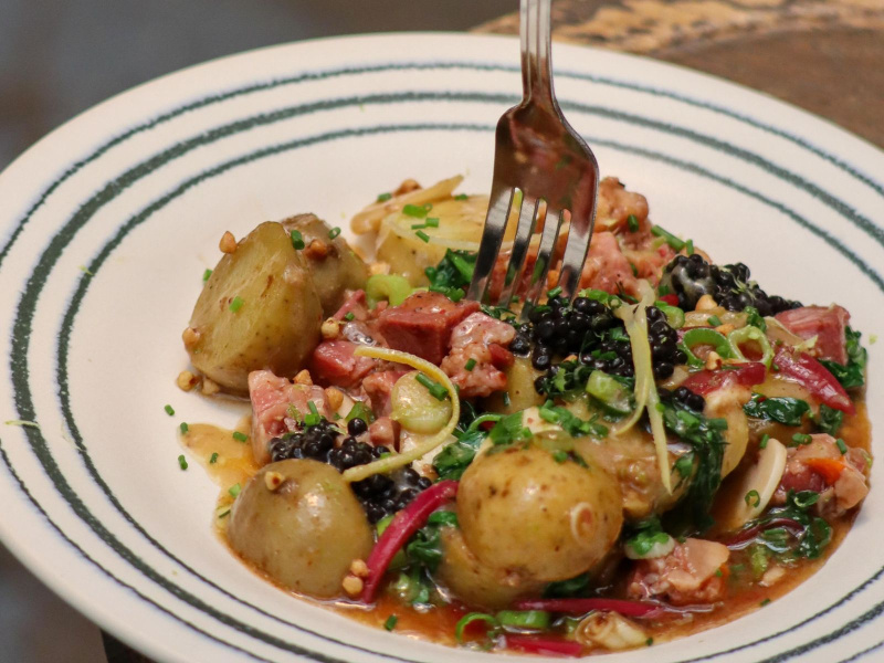 Aux commandes de la cuisine, Julien Camdeborde : Charcut’, croquettes, plats canailles… chaque bouchée est une claque de simplicité et de goût.