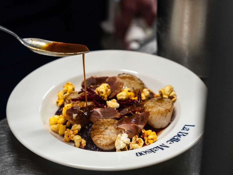 Au cœur du quartier de Montmartre, juste en contrebas du célèbre Moulin, un nouveau restaurant attire déjà l’attention des amateurs de cuisine française : La Belle Maison. Ouvert le 14 juillet dernier, cet établissement plein de charme redonne vie à un ancien bar PMU. Décoration feutrée, table nappée et bougie, l’ambiance y est cosy et intimiste. Tableau impressionniste aux murs qui rendent hommage à l’histoire mythique de ce quartier. Le grand bar en zinc, pièce maîtresse de la salle, propose une belle sélection d’apéritif et digestif Français. En cuisine, le chef célèbre également la tradition. La carte est présentée à l’ardoise et évolue au fil des saisons et selon l’envie du chef. On y retrouve les grands classiques de la gastronomie française : un foie gras maison cuit à basse température, oeuf mayonnaise ou encore des escargots sauvages de Bourgogne au beurre persillé. En parallèle de la carte, le chef propose chaque jour ses suggestions : œuf en gelée de légumes, lard fumé ou encore un crémeux de boudin noir à tartiner, et, à partager. Pour les plats, sélection de grand classique comme un steak flambée (en salle!) au cognac et sauce au poivre, tartare de bœuf préparé minute selon l’envie du client, ou un vol au vent volaille jaune et champignon, bien crémeux et généreux. Également un poisson du jour et un plat végétarien qui évolue selon la saison et l’approvisionnement. Ici, tout est fait maison, avec des produits soigneusement sélectionnés dans une recherche constante de fraîcheur et de gourmandise. Belle découverte. Coup de coeur de la rédac !